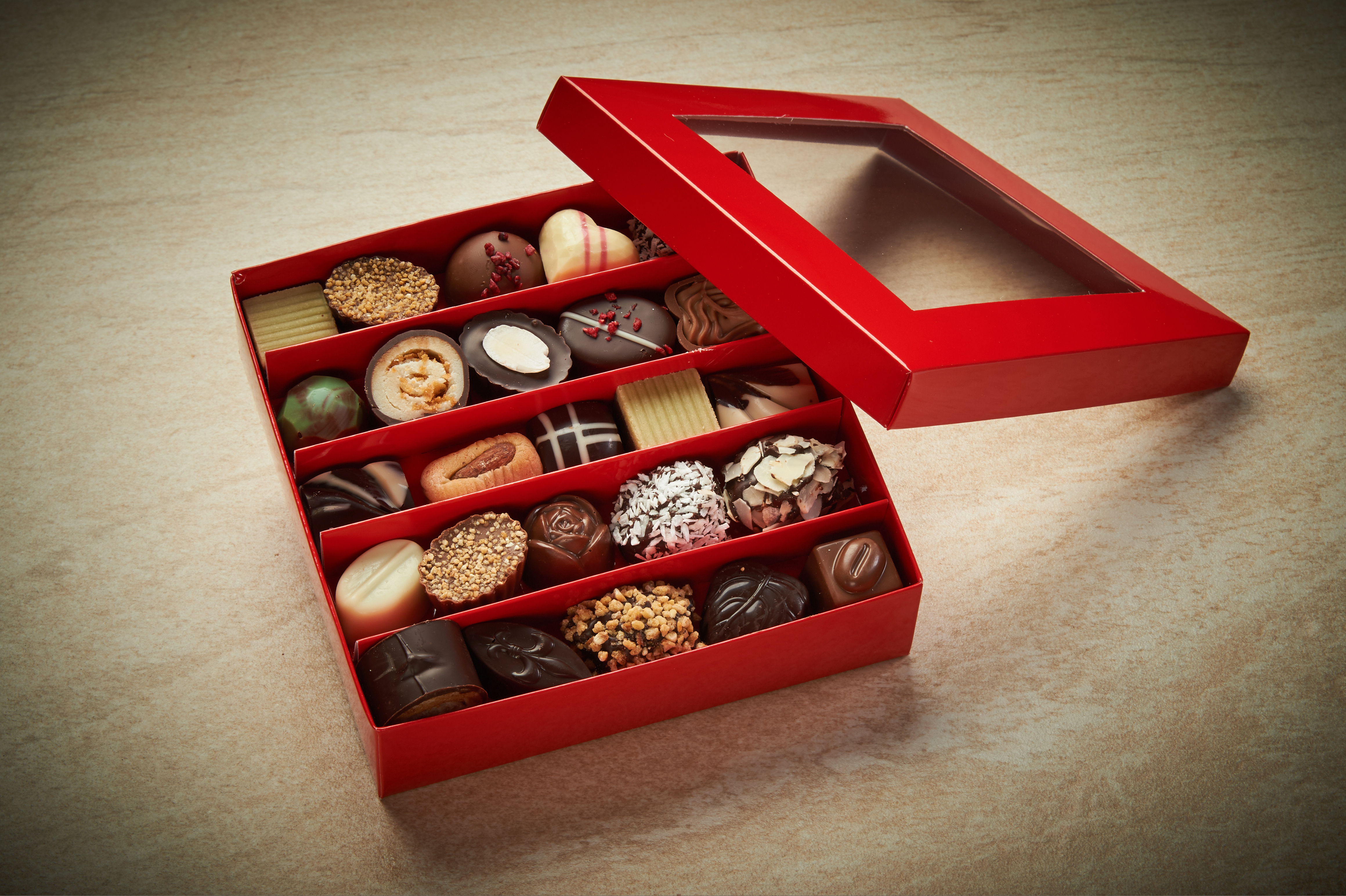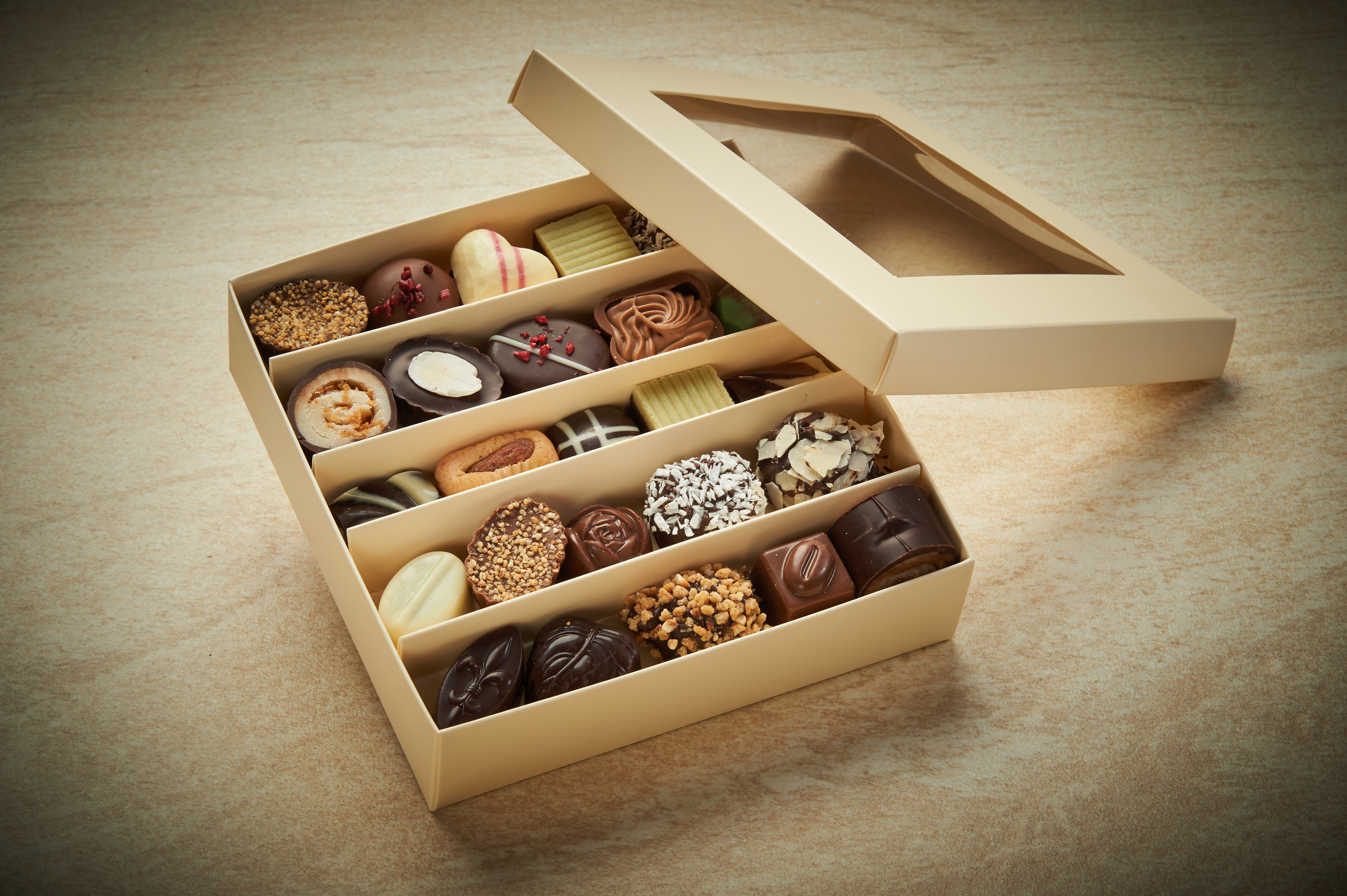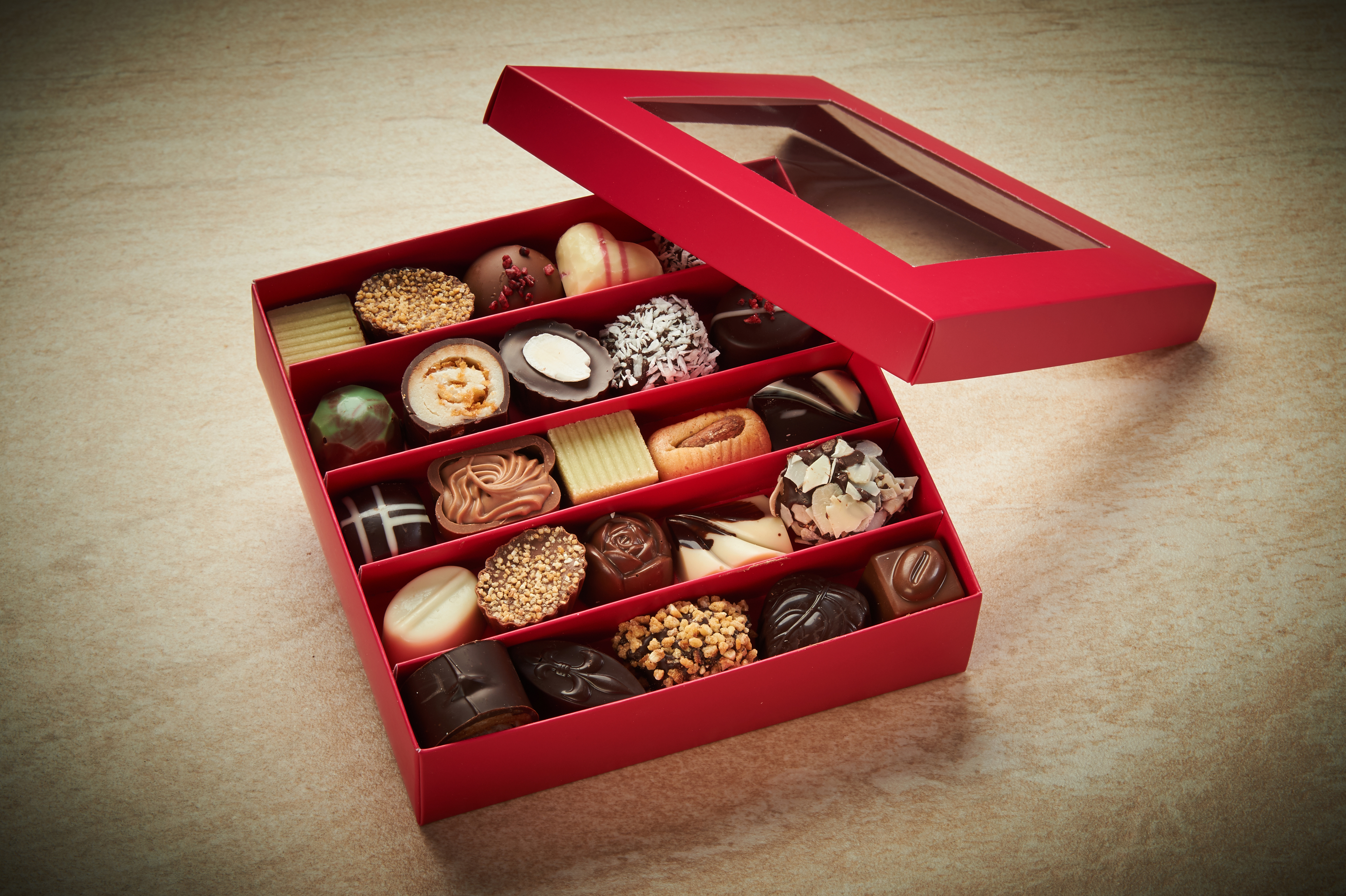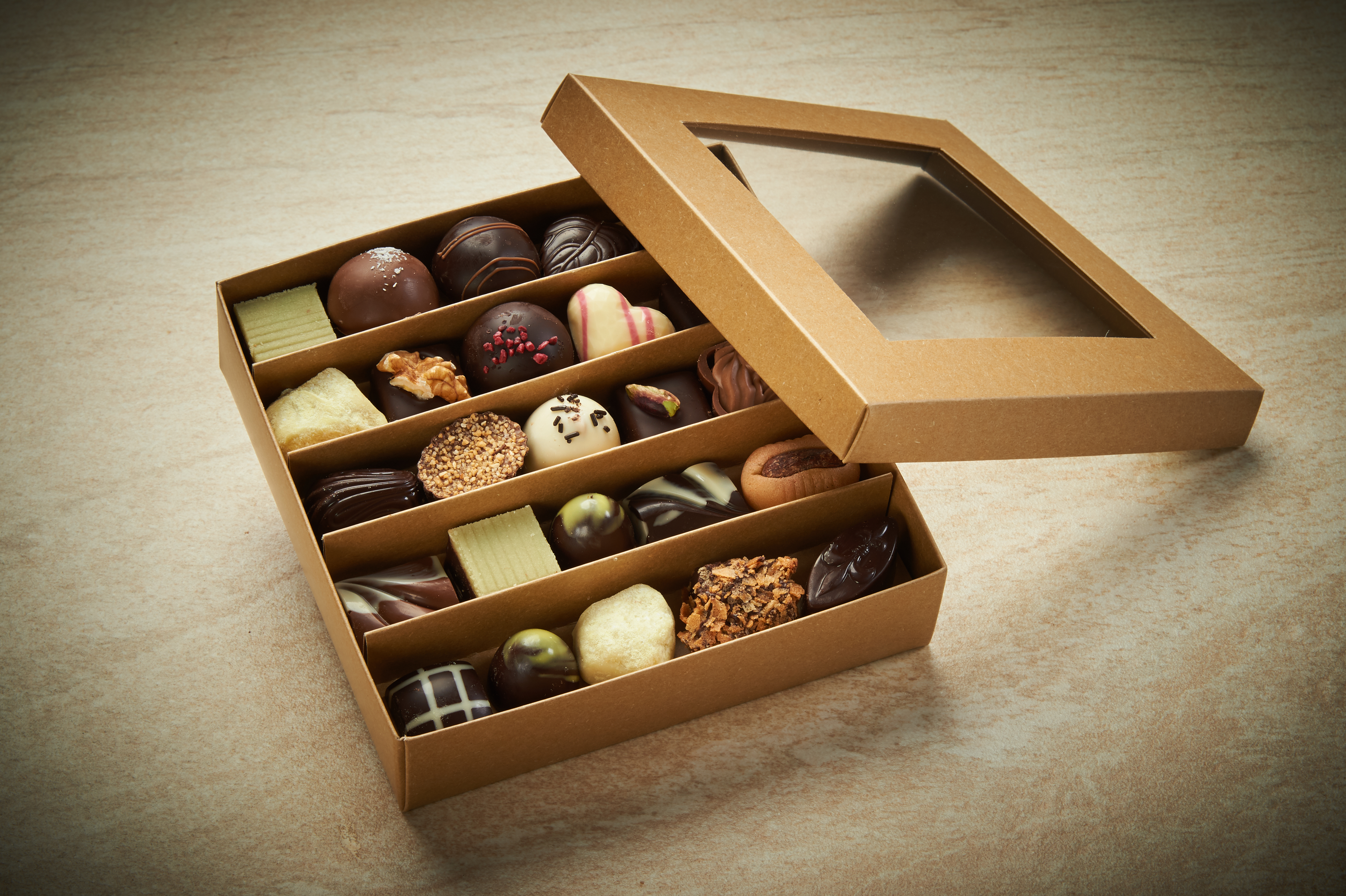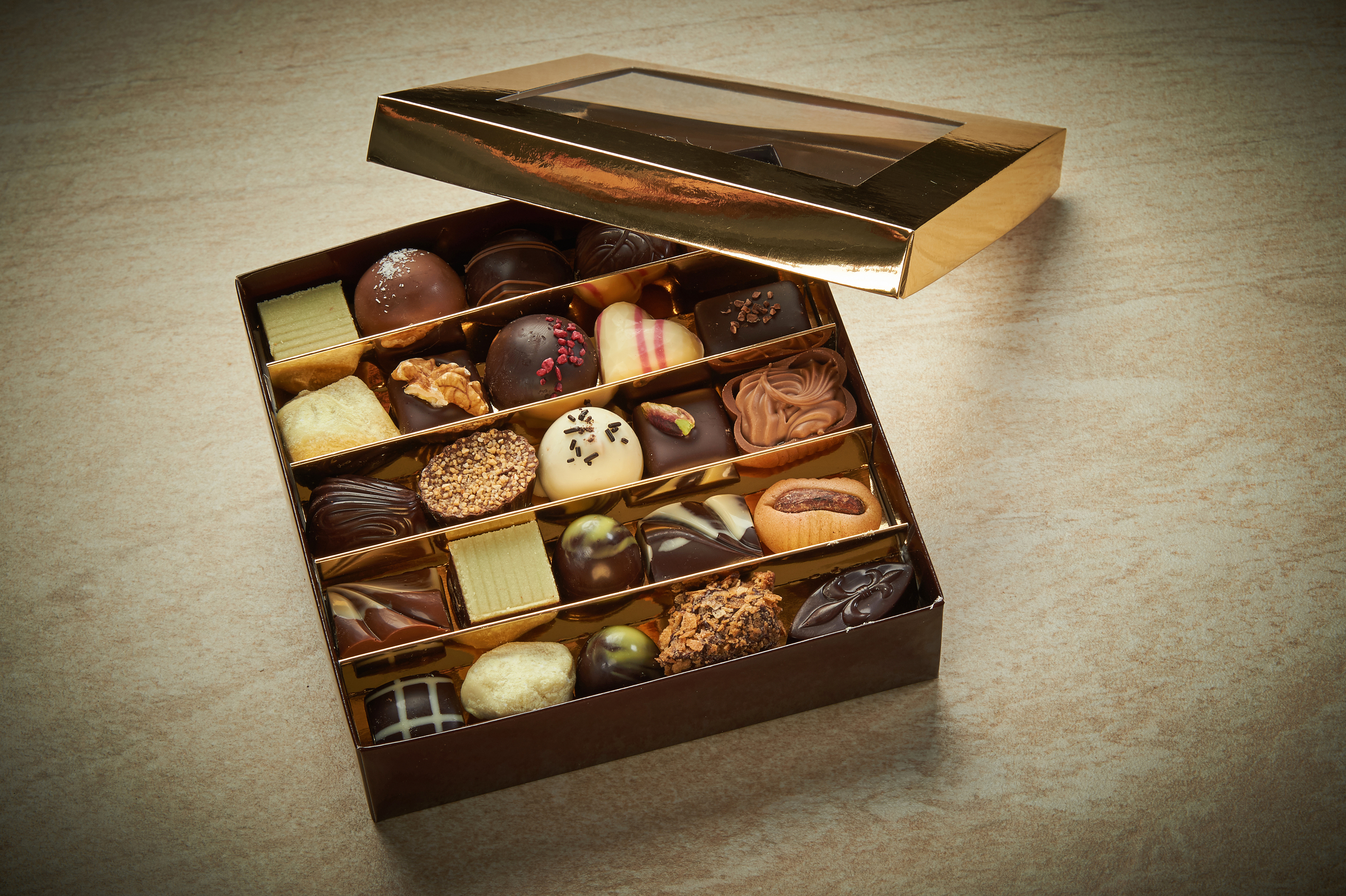 Bunt gemischte Pralinenbox mit 25 Pralinen.