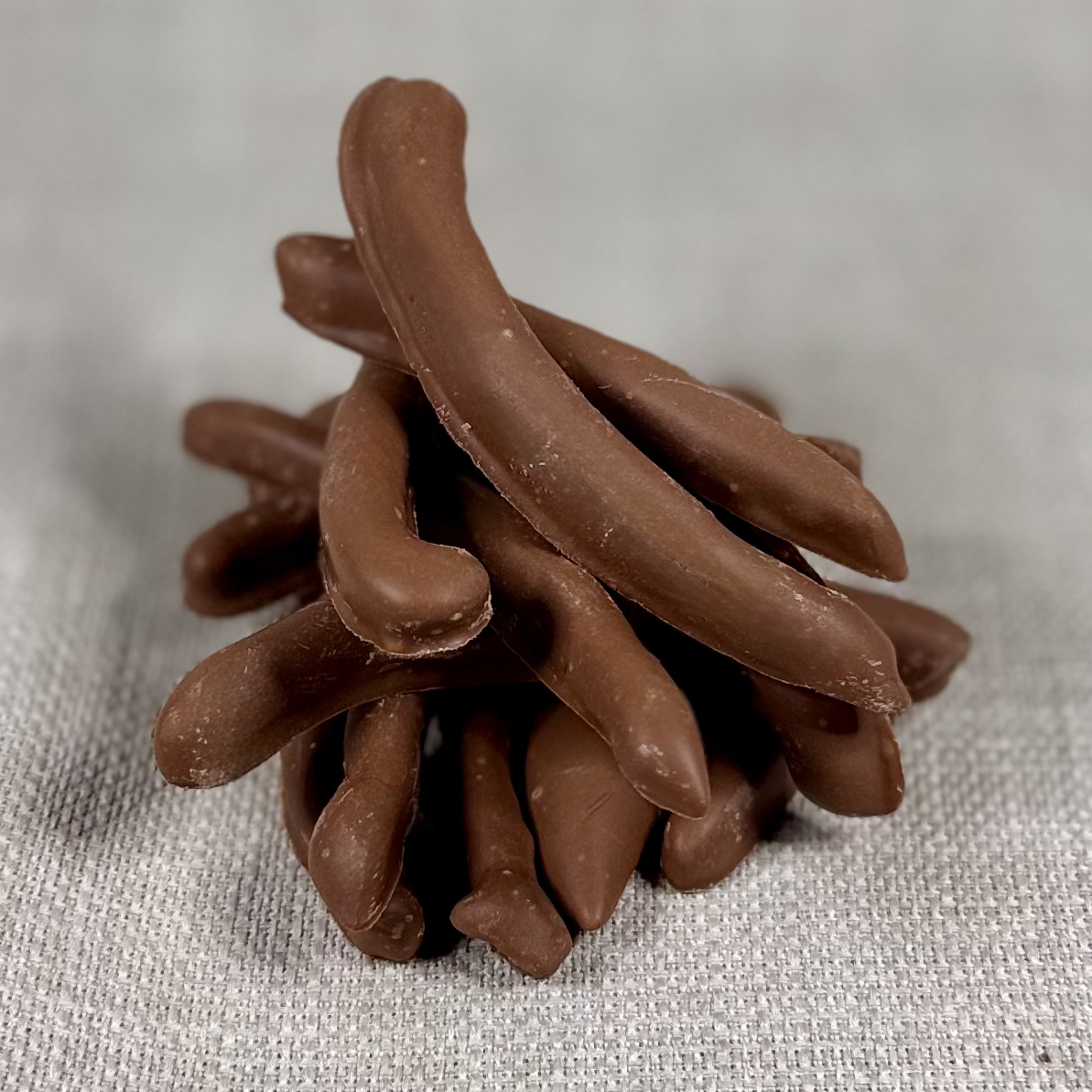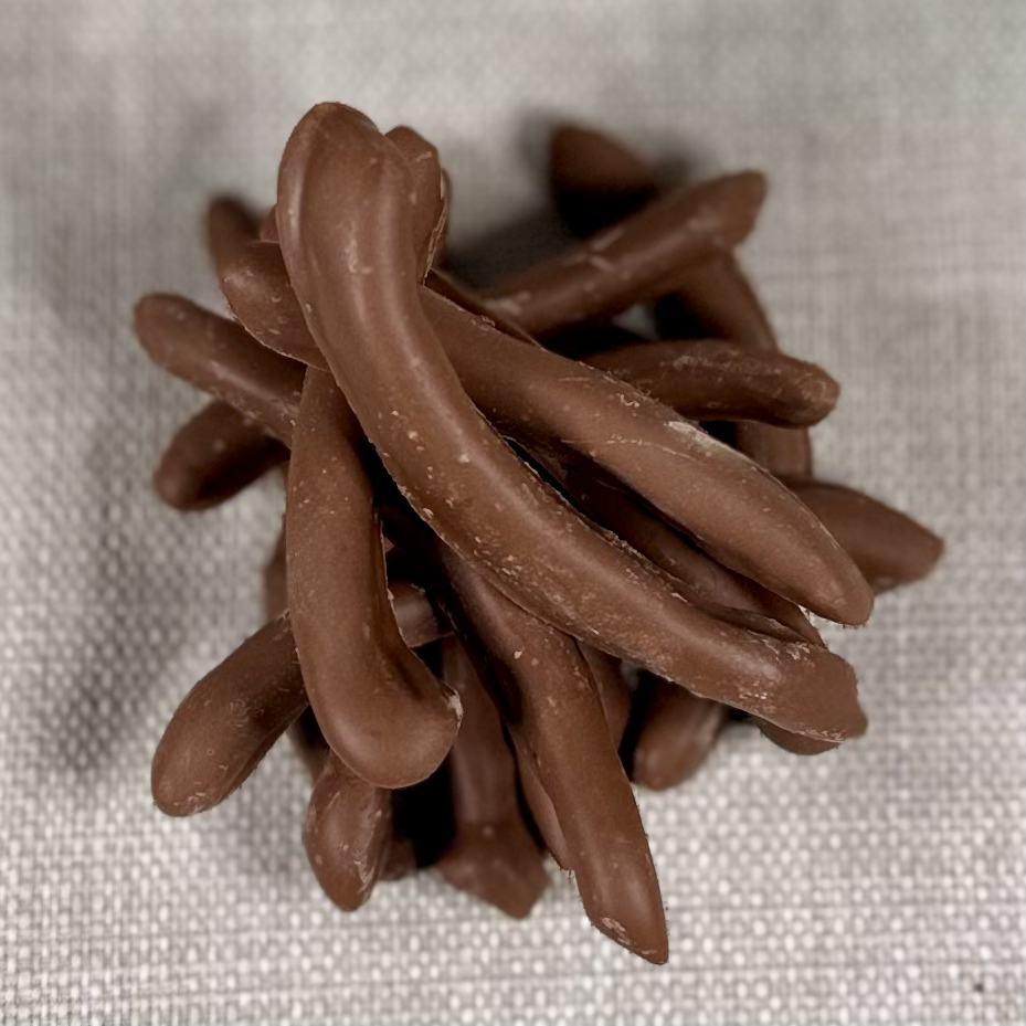 Kandierte Orangenschalen, getaucht in Vollmilch Schokolade.